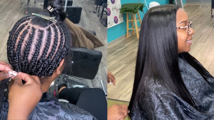 Traditional Sew In Hair Weave With Leave Out This Client Has Short Natural Hair And Was Looking For A Sew In Hairstyles Long Weave Hairstyles Hair Styles